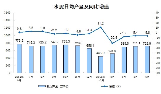{浙江同力轉載}根據國家統計局公布的數據顯示,2015年6月份水泥產量21,776萬噸,同比下降5.8%;2015年1-6月份全國規模以上水泥產量107,714 萬噸,同比負增長5.3%。單月水泥產量和累計水泥產量同比下滑幅度繼續擴大 。