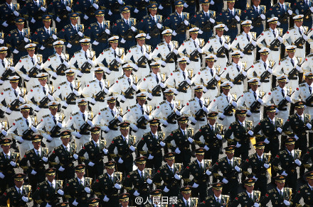 中國(guó)閱兵史上的首次設(shè)置合唱團(tuán),一千多名隊(duì)員全部由總裝、海軍、空軍所屬院校的學(xué)員組成,為網(wǎng)友們奉獻(xiàn)了“霸氣的現(xiàn)場(chǎng)演唱會(huì)”。