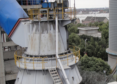 在離心力的連續(xù)驅(qū)動下物料不斷向磨盤外緣運(yùn)動,當(dāng)離開磨盤的物料遇到通過風(fēng)環(huán)進(jìn)入磨內(nèi)的熱氣體并隨之上升,經(jīng)磨機(jī)中部殼體進(jìn)入到分離器中,在此過程中物料與熱氣體進(jìn)行了充分的熱交換,水分迅速被蒸發(fā)。選粉機(jī)控制著輥磨出口的成品細(xì)度,大于規(guī)定尺寸的顆粒被分離,并落回至磨盤,滿足細(xì)度要求的物料通過選分機(jī)進(jìn)入成品倉。