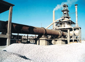 石灰石在預熱器被1150°C窯煙氣加熱到900°C左右,約有30%分解,經液壓推桿推入回轉窯內,石灰石在回轉窯內經燒結分解為CaO和CO2。分解后生成的石灰石進入冷卻器,在冷卻器內被鼓入的冷空氣冷卻到100°C一下排出。經熱交換的600°C熱空氣進入窯和煤氣混合燃燒。廢氣在兌入冷風經引風機進入袋式除塵器,再經排風機進入煙囪。